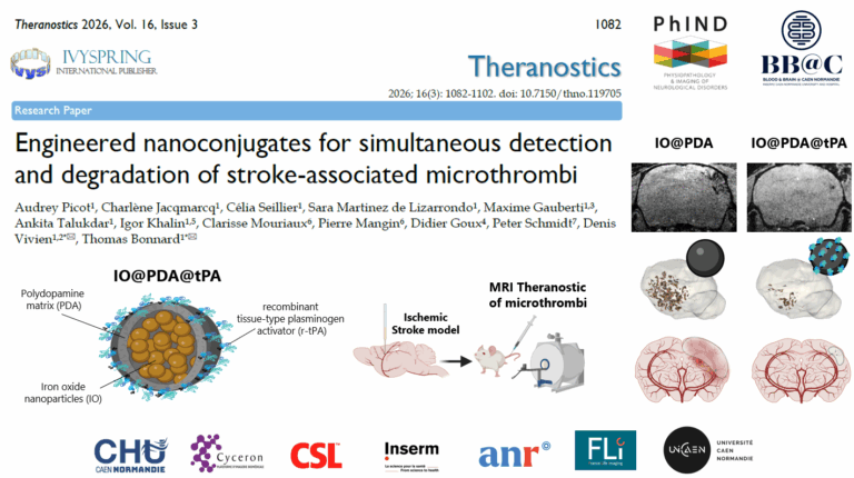 Actualités Le 08 Jan 2021 Actualités New perspectives for stroke management: better targeting and visualization of microthrombi. 30 octobre 2025 Lire la suite New perspectives for stroke management: better targeting and visualization of microthrombi. 30 octobre 2025 Lire la suite Denis Vivien was honored with the ISFP Prize 2025 30 septembre 2025 Lire la suite News NormandyStroke 22 septembre 2025 Lire la suite Une nouvelle publication du laboratoire PhIND – BB@C dans le domaine de l’imagerie in vivo. 8 septembre 2025 Lire la suite Enhancing Thrombolysis Safety in Post-Acute Ischemic Stroke with Tissue Plasminogen Activator-Associated Microparticles 23 juin 2025 Lire la suite Art, Bien-être, Cerveau : une rencontre essentielle ? La psychologie expérimentale au Musée des Beaux-Arts de Caen : impact d’une visite sur les capacités attentionnelles et cognitives 7/7 13 mai 2025 Lire la suite Art, Bien-être, Cerveau : une rencontre essentielle ? Le protocole : la visite au Musée des Beaux-Arts de Caen 6/7 5 mai 2025 Lire la suite BloodBrain Connect – Le magazine BB@C 23 avril 2025 Lire la suite Art, Bien-être, Cerveau : une rencontre essentielle ? Que regarde-t-on vraiment ? 5/7 15 avril 2025 Lire la suite News Resolve Stroke 11 mars 2025 Lire la suite Denis Vivien président du comité de pilotage stratégique de l’ Infrastructure France Biobank Network (FrBioNet) 31 janvier 2025 Lire la suite Maxime Gauberti, lauréat d’une bourse ERC Consolidator Grant Université de Caen Normandie 13 janvier 2025 Lire la suite Interview de Thomas Bonnard sur RTS – Radio Télévision Suisse AVC: un nouveau produit rend visible et détruit les micro-caillots sanguins 14 novembre 2024 Lire la suite Thomas Bonnard soigner des microthrombi grâce aux moules 5 novembre 2024 Lire la suite We are pleased to bring to your attention a recent Trends in Neurosciences ‘Spotlight’ commentary highlighting and discussing our recent Nature Neurosciences paper. 25 octobre 2024 Lire la suite Art, Bien-être, Cerveau : une rencontre essentielle ? Quand l’art passe dans notre cerveau 4/7 21 octobre 2024 Lire la suite Promoting BB@C research in Pediatric Anesthesia in 2024 national and international congresses Jean-Philippe Salaün, MD PhD 2 octobre 2024 Lire la suite Lys Therapeutics lauréat du concours d’innovation i-Nov 2024 1 octobre 2024 Lire la suite Plus de publications à afficher Retour